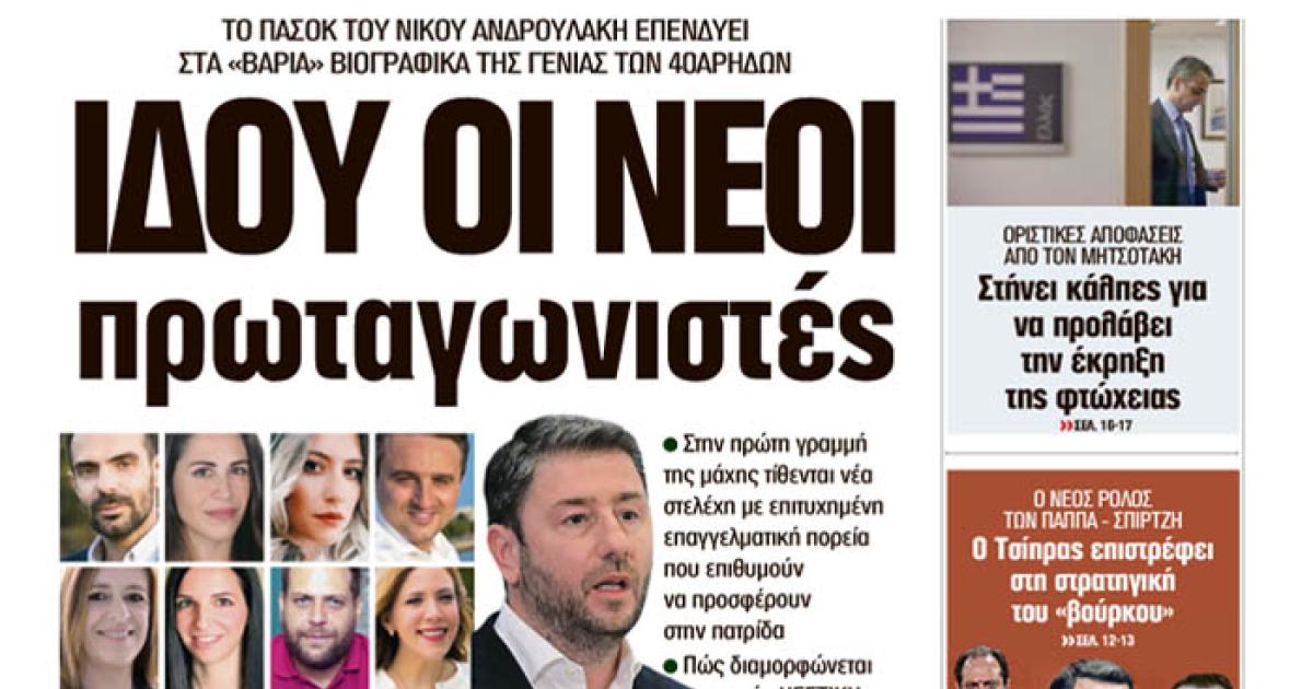ΤΟ ΠΑΣΟΚ ΤΟΥ ΝΙΚΟΥ ΑΝΔΡΟΥΛΑΚΗ ΕΠΕΝΔΥΕΙ ΣΤΑ «ΒΑΡΙΑ» ΒΙΟΓΡΑΦΙΚΑ ΤΗΣ ΓΕΝΙΑΣ ΤΩΝ 40ΑΡΗΔΩΝ