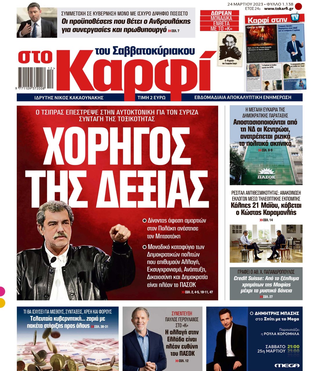 Μη χάσετε εκτάκτως την Παρασκευή 24 Μαρτίου 2023 το αποκαλυπτικό «ΚΑΡΦΙ» που κυκλοφορεί σε όλα τα περίπτερα της χώρας με πλούσια θεματολογία και πολλές αποκλειστικότητες.
