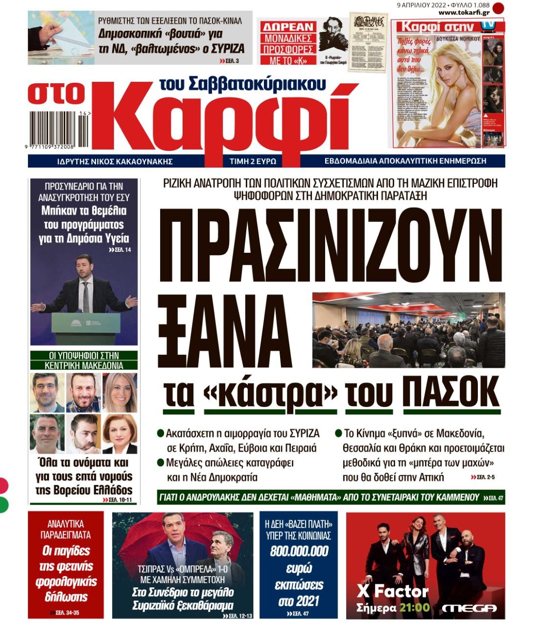 Μη χάσετε αυτό το Σάββατο 9 Απριλίου 2022 το αποκαλυπτικό «ΚΑΡΦΙ» που κυκλοφορεί σε όλα τα περίπτερα της χώρας με πλούσια θεματολογία και πολλές αποκλειστικότητες.