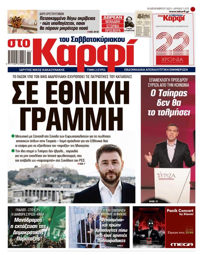 Μη χάσετε το Σάββατο 18 Δεκεμβρίου 2021, το αποκαλυπτικό «ΚΑΡΦΙ» που κυκλοφορεί σε όλα τα περίπτερα της χώρας με πλούσια θεματολογία και πολλές αποκλειστικότητες.