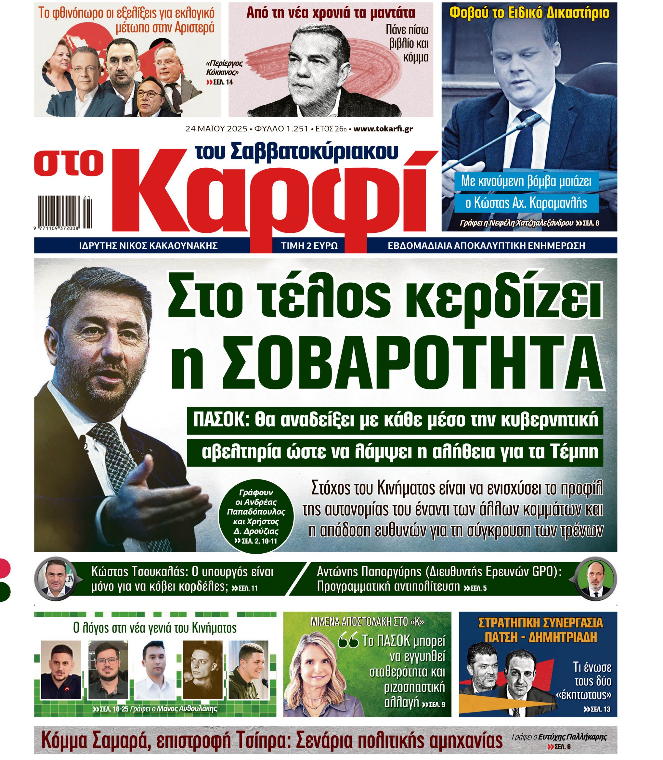 Μη χάσετε το Σάββατο 24 Μαΐου 2025 το αποκαλυπτικό «ΚΑΡΦΙ» που κυκλοφορεί σε όλα τα περίπτερα της χώρας με πλούσια θεματολογία και πολλές αποκλειστικότητες.