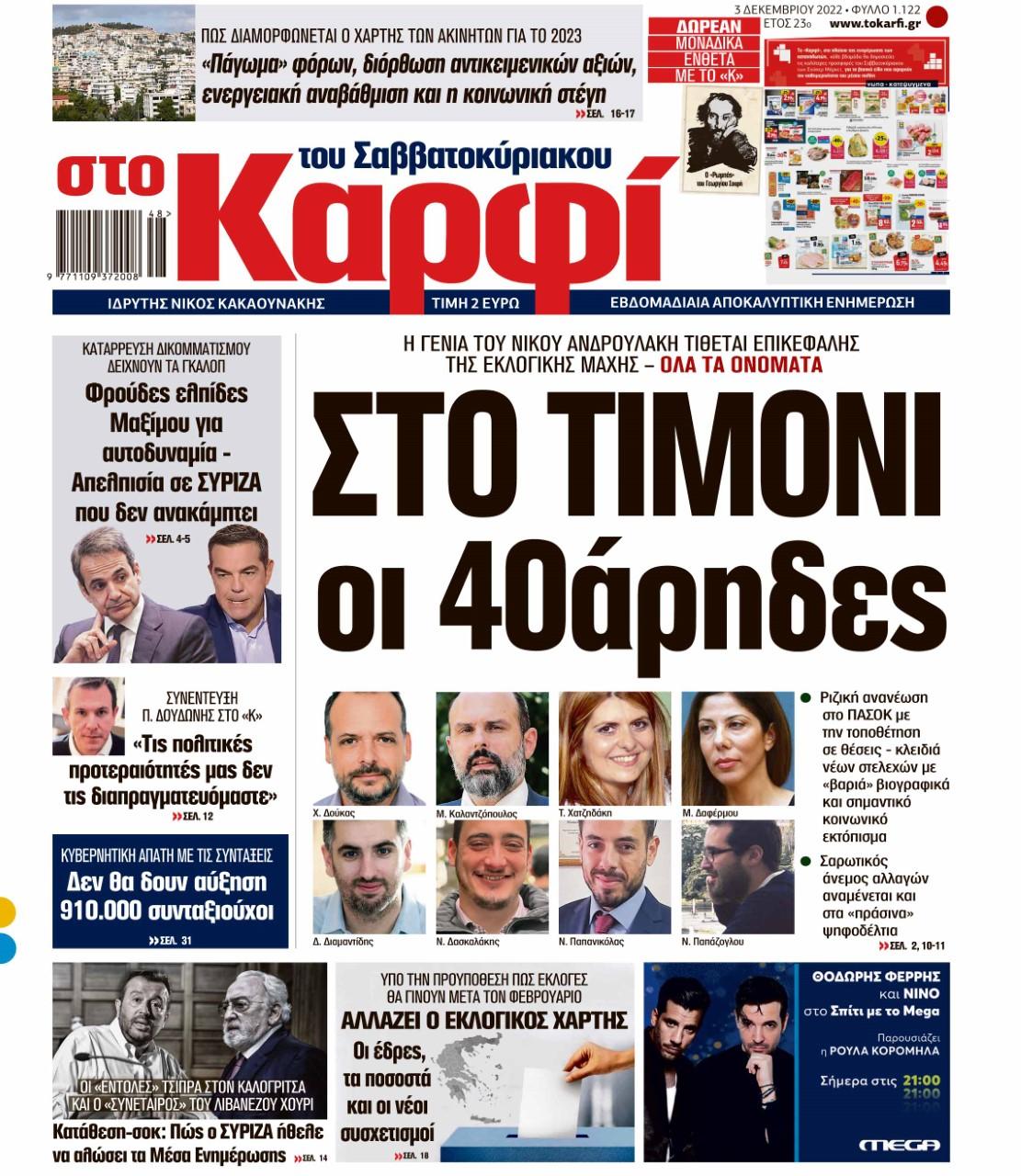 Μη χάσετε το Σάββατο 3 Δεκεμβρίου 2022 το αποκαλυπτικό «ΚΑΡΦΙ» που κυκλοφορεί σε όλα τα περίπτερα της χώρας με πλούσια θεματολογία και πολλές αποκλειστικότητες.