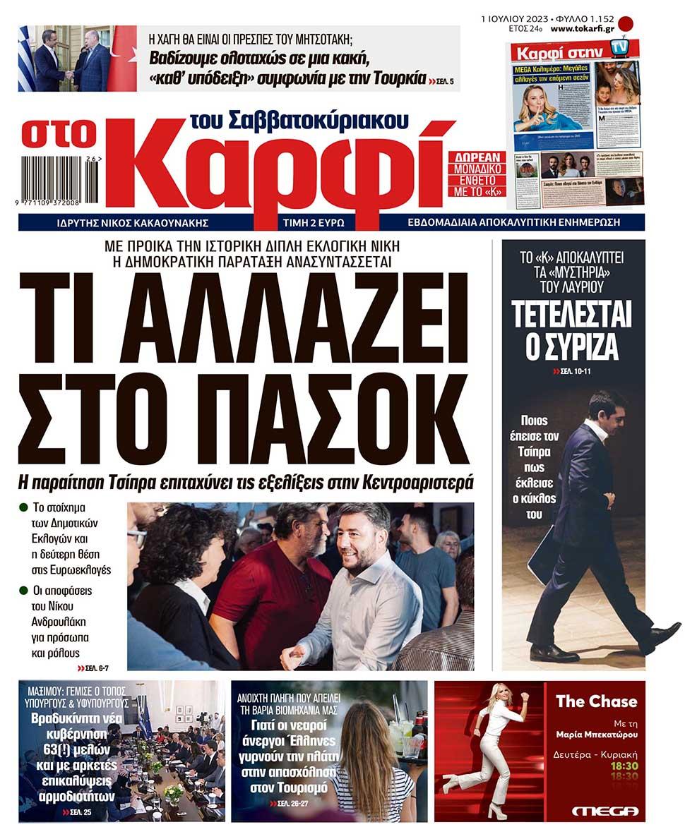 Μη χάσετε το Σάββατο 1 Ιουλίου 2023 το αποκαλυπτικό «ΚΑΡΦΙ» που κυκλοφορεί σε όλα τα περίπτερα της χώρας με πλούσια θεματολογία και πολλές αποκλειστικότητες.