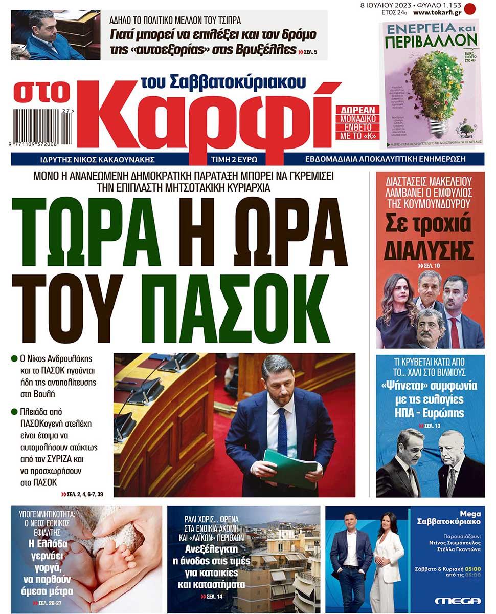 Μη χάσετε το Σάββατο 8 Ιουλίου 2023 το αποκαλυπτικό «ΚΑΡΦΙ» που κυκλοφορεί σε όλα τα περίπτερα της χώρας με πλούσια θεματολογία και πολλές αποκλειστικότητες.