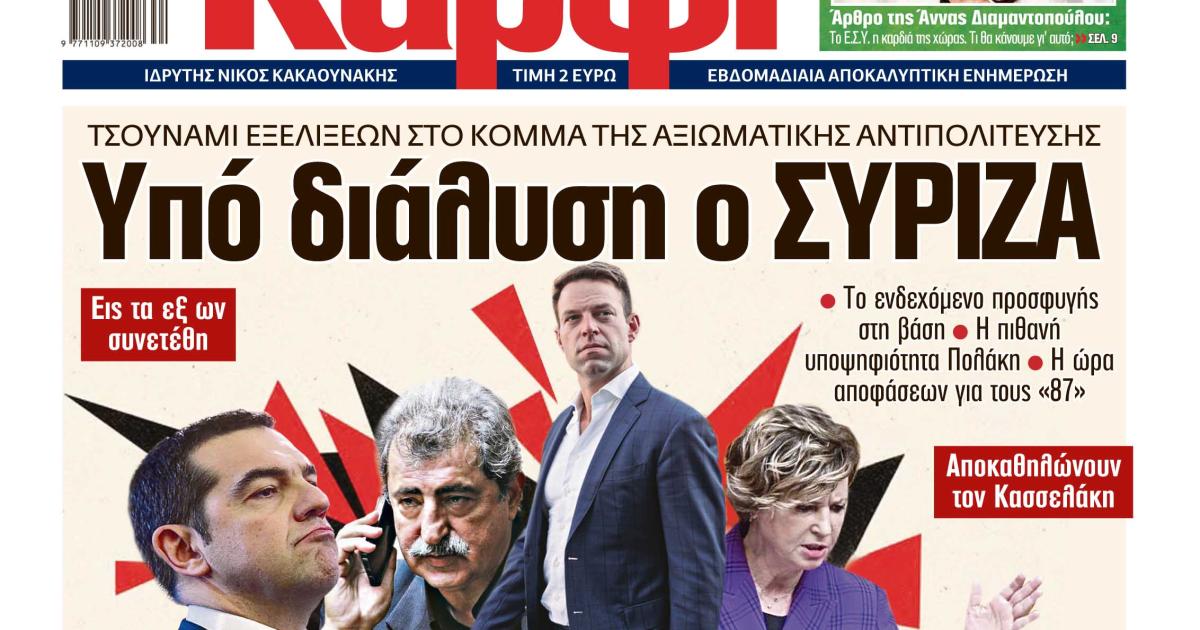 Μη χάσετε το Σάββατο 24 Αυγούστου 2024 το αποκαλυπτικό «ΚΑΡΦΙ» που κυκλοφορεί σε όλα τα περίπτερα της χώρας με πλούσια θεματολογία και πολλές αποκλειστικότητες.