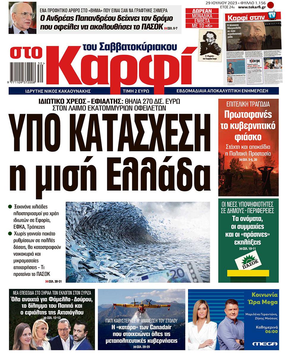 Μη χάσετε το Σάββατο 29 Ιουλίου 2023 το αποκαλυπτικό «ΚΑΡΦΙ» που κυκλοφορεί σε όλα τα περίπτερα της χώρας με πλούσια θεματολογία και πολλές αποκλειστικότητες.