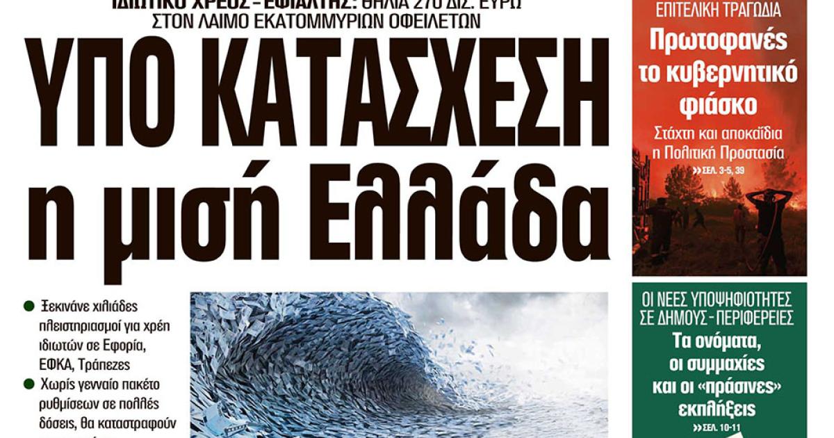 ΙΔΙΩΤΙΚΟ ΧΡΕΟΣ – ΕΦΙΑΛΤΗΣ: ΘΗΛΙΑ 270 ΔΙΣ. ΕΥΡΩ ΣΤΟΝ ΛΑΙΜΟ ΕΚΑΤΟΜΜΥΡΙΩΝ ΟΦΕΙΛΕΤΩΝ