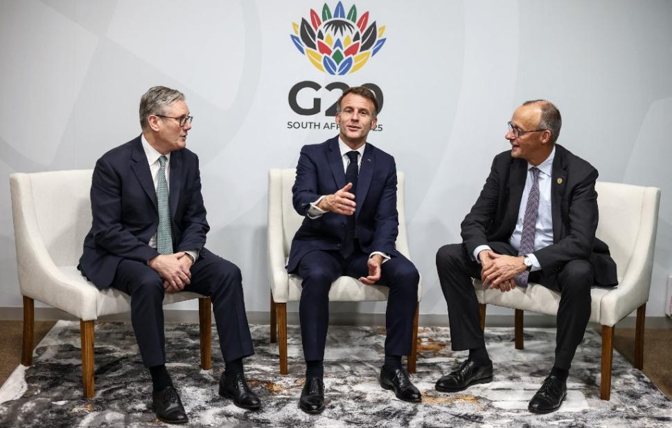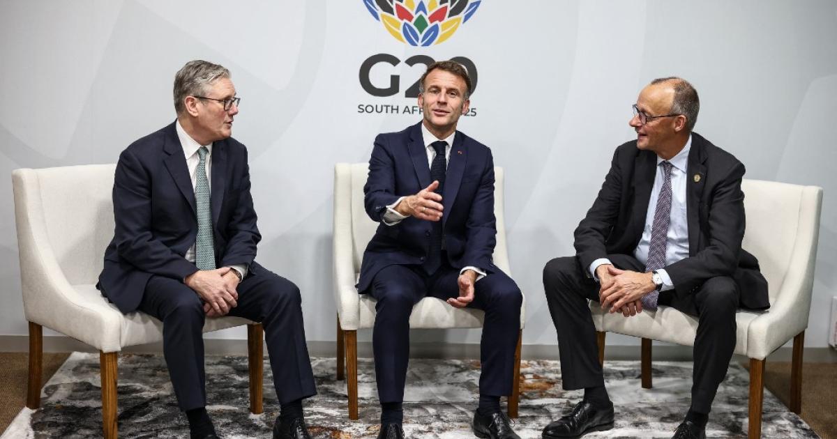 Ο πρόεδρος της Γαλλίας Εμανουέλ Μακρόν, ο Γερμανός καγκελάριος Φρίντριχ Μερτς και ο Βρετανός πρωθυπουργός Κιρ Στάρμερ είχαν σήμερα σημαντική συνάντηση στο περιθώριο της Συνόδου της G20 στο Γιοχάνεσμπουργκ, προκειμένου να εξετάσουν ενδελεχώς το αμερικανικό ειρηνευτικό σχέδιο για την Ουκρανία.