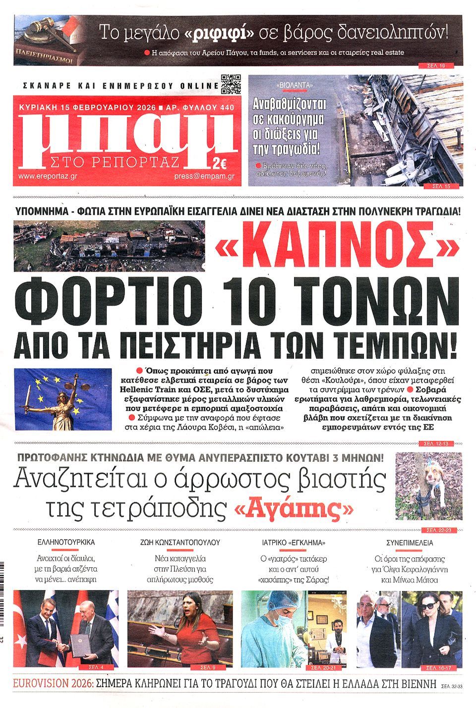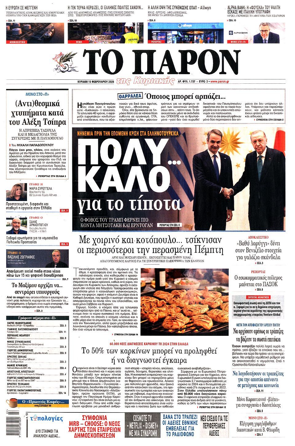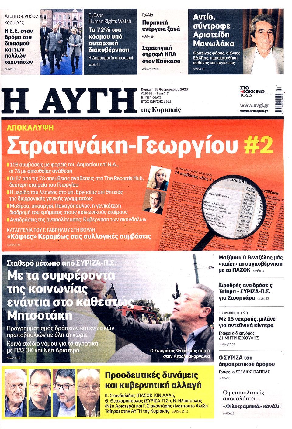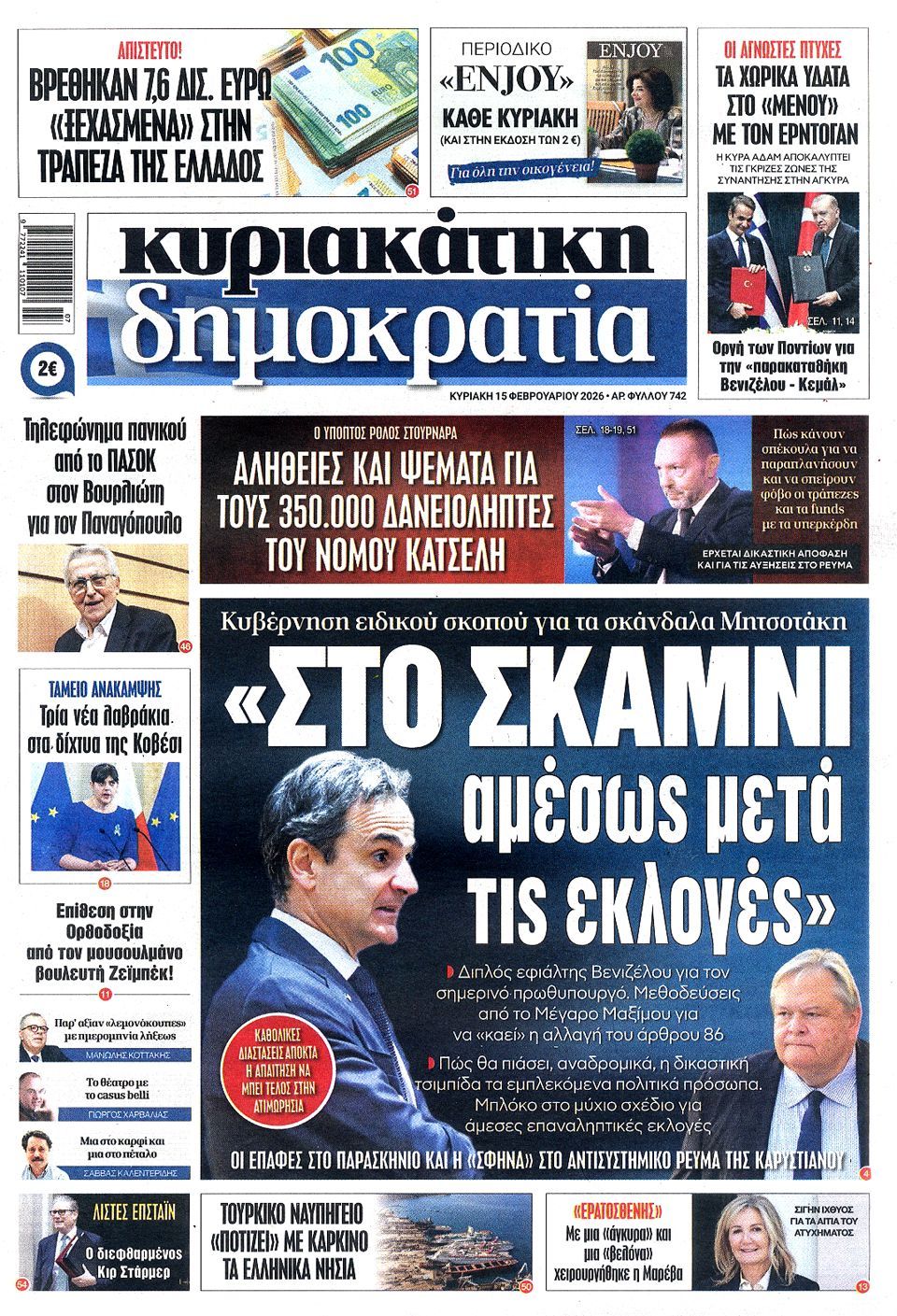 Διαβάστε τα πρωτοσέλιδα των εφημερίδων της Κυριακής 15 Φεβρουαρίου 2026