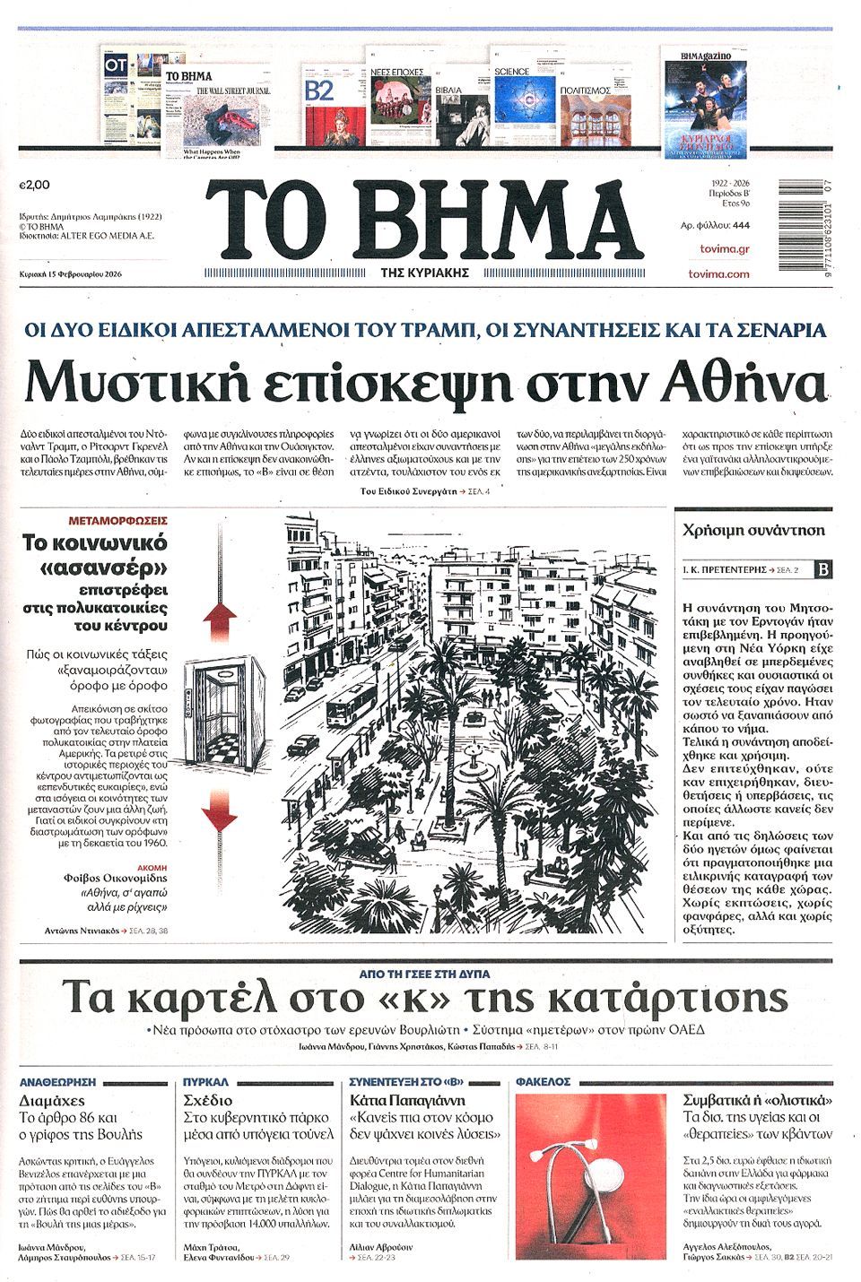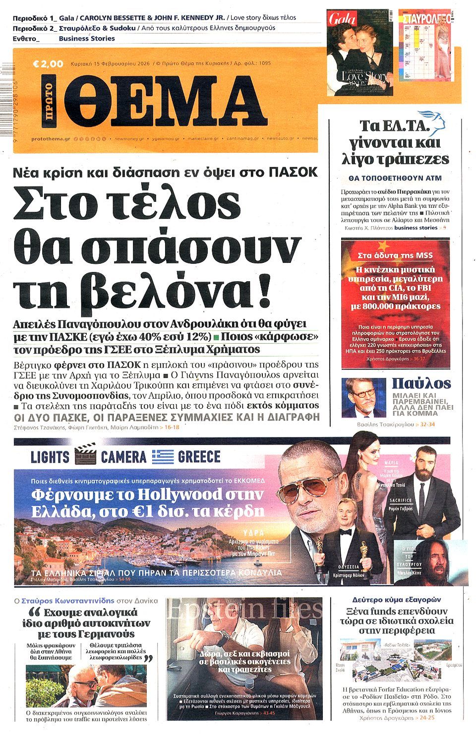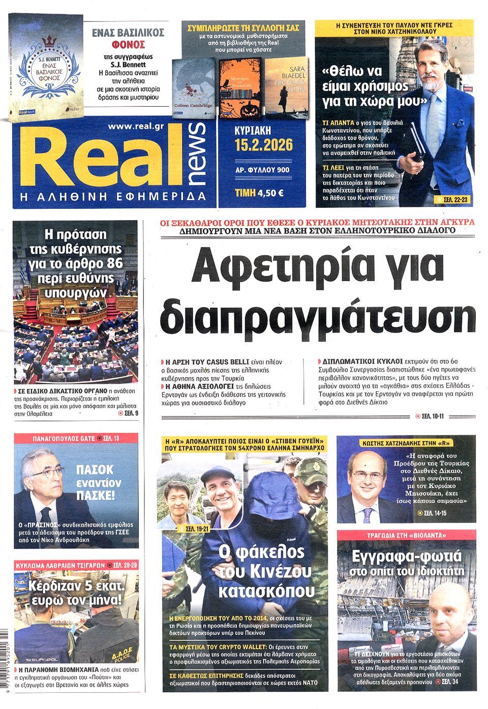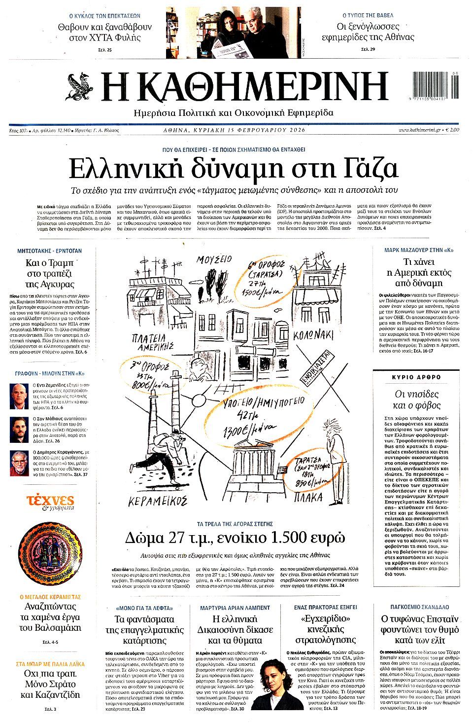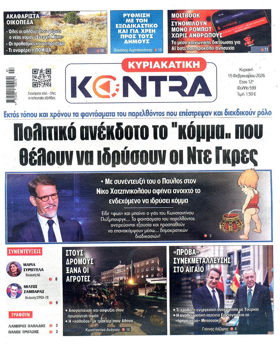 Διαβάστε τα πρωτοσέλιδα των εφημερίδων της Κυριακής 15 Φεβρουαρίου 2026