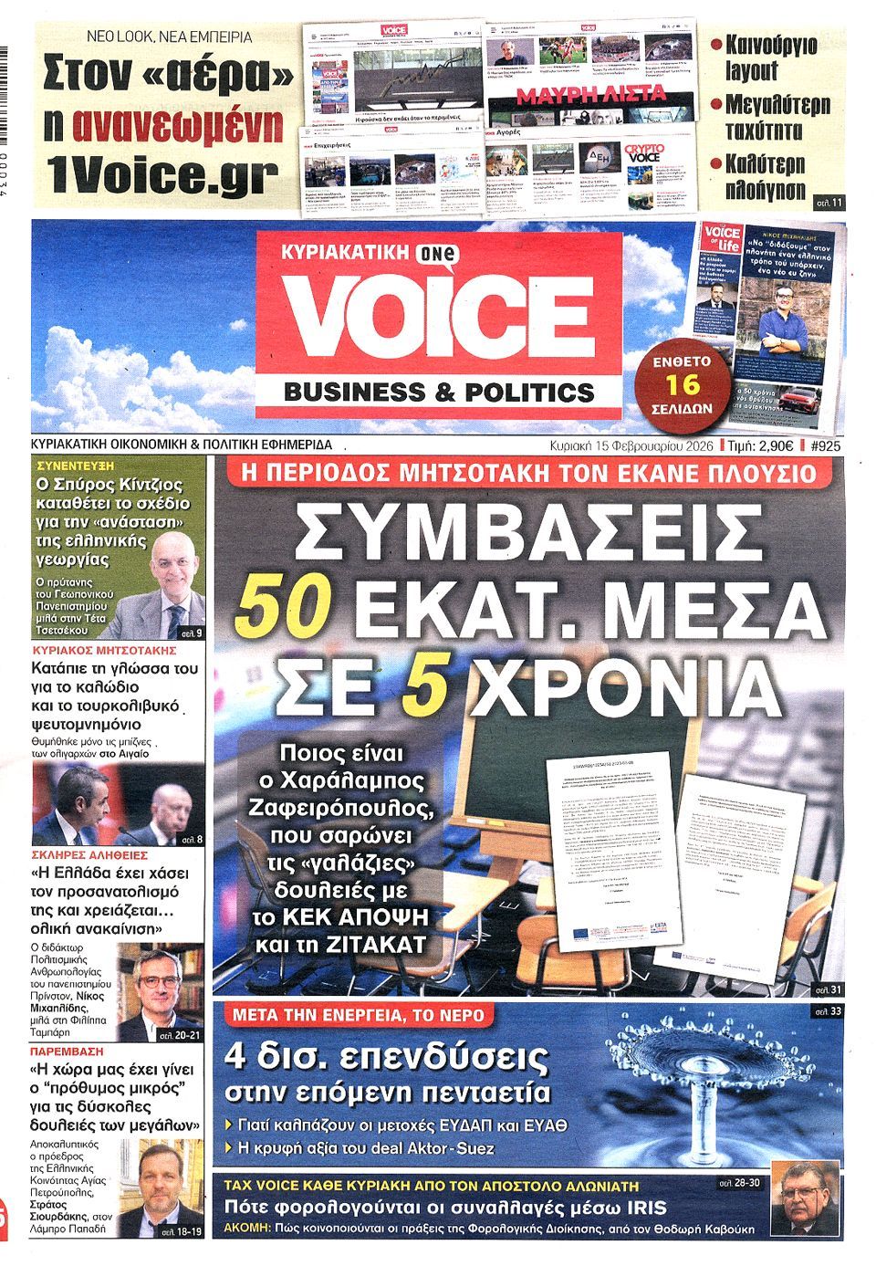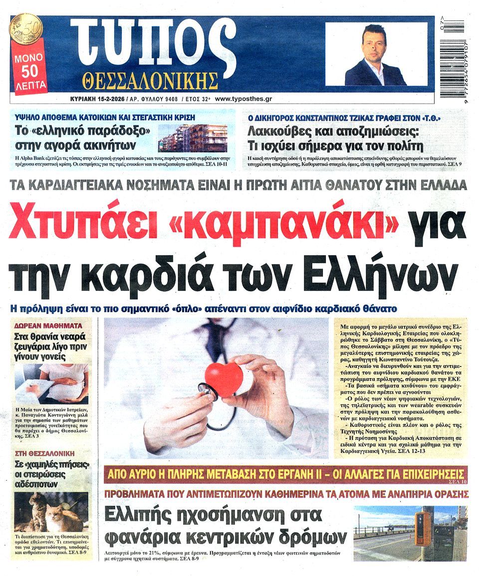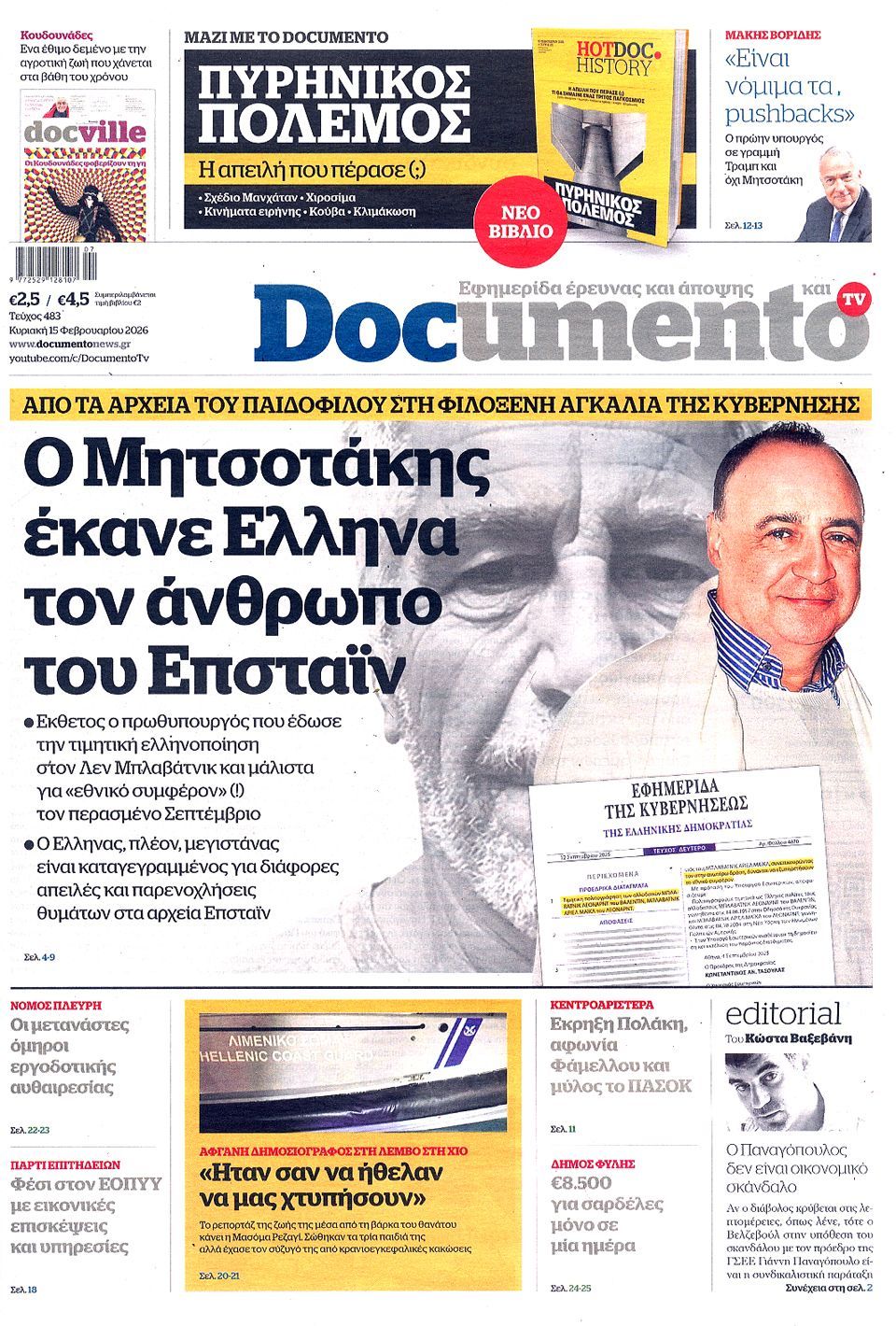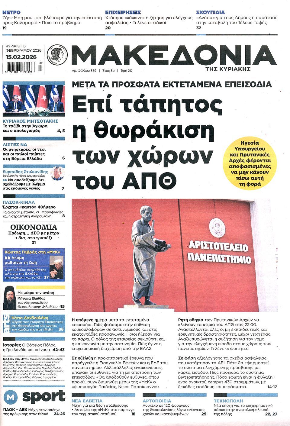 Διαβάστε τα πρωτοσέλιδα των εφημερίδων της Κυριακής 15 Φεβρουαρίου 2026