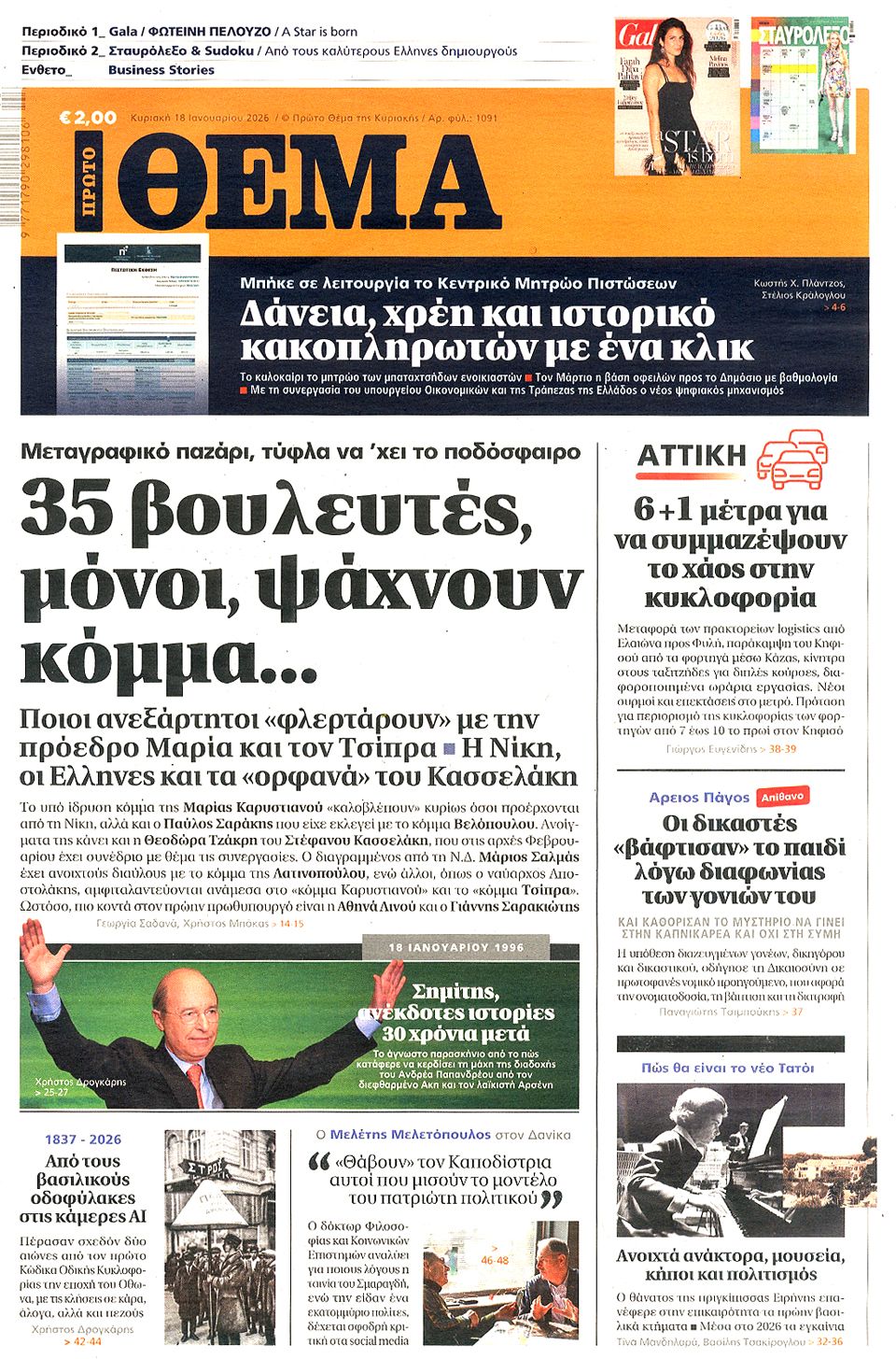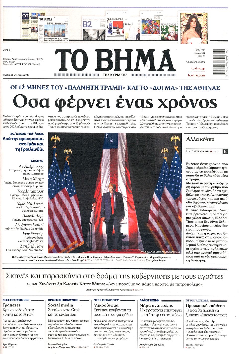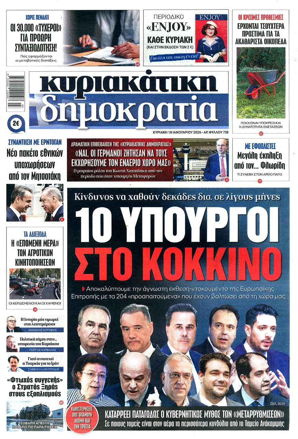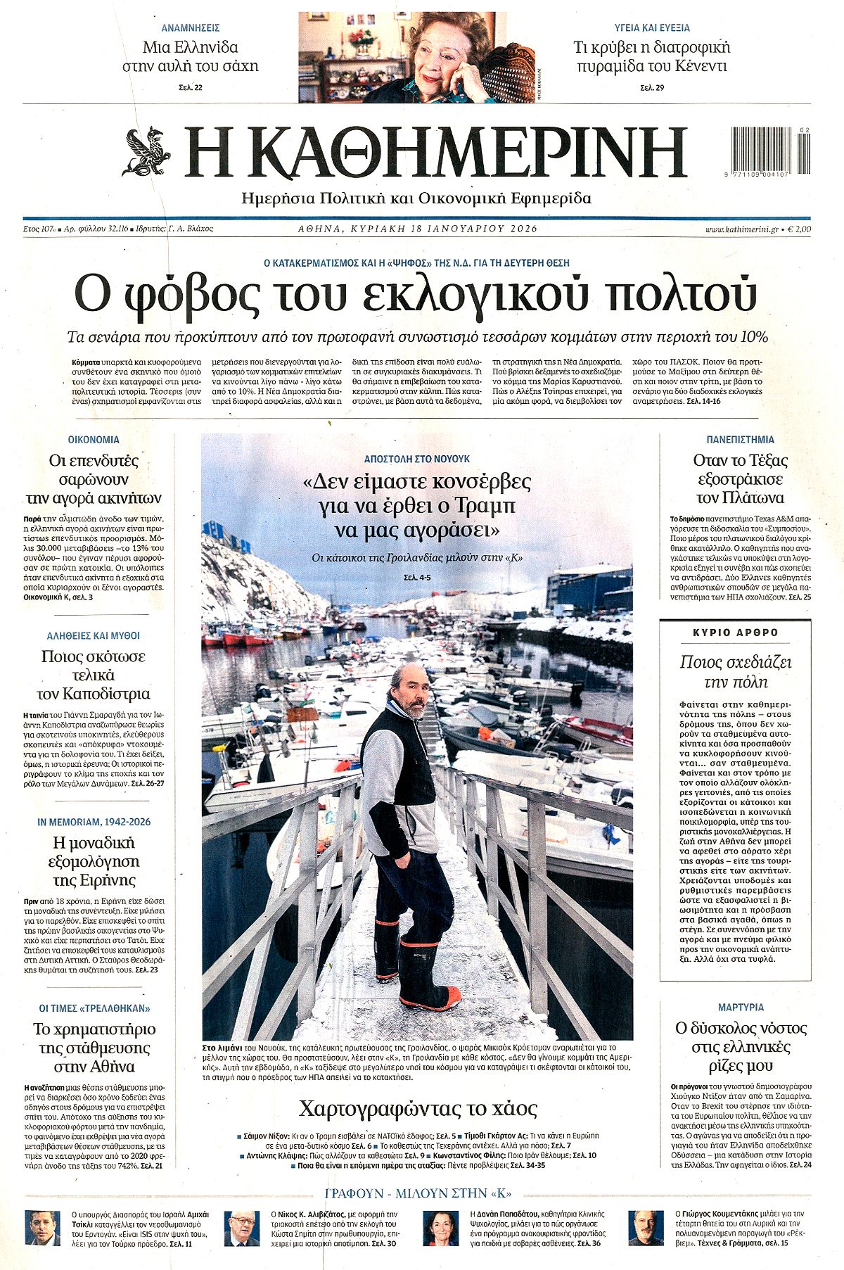 Διαβάστε τα πρωτοσέλιδα των εφημερίδων της Κυριακής 18 Ιανουαρίου 2026