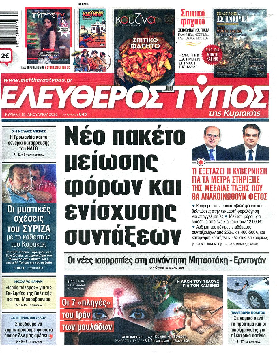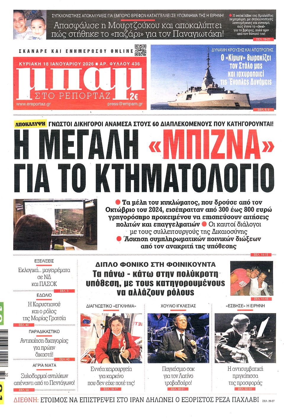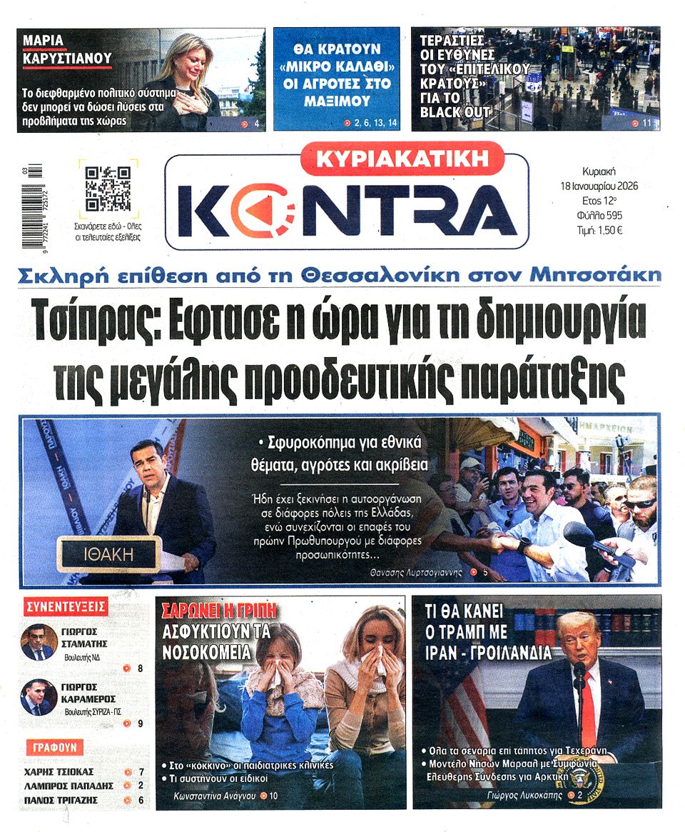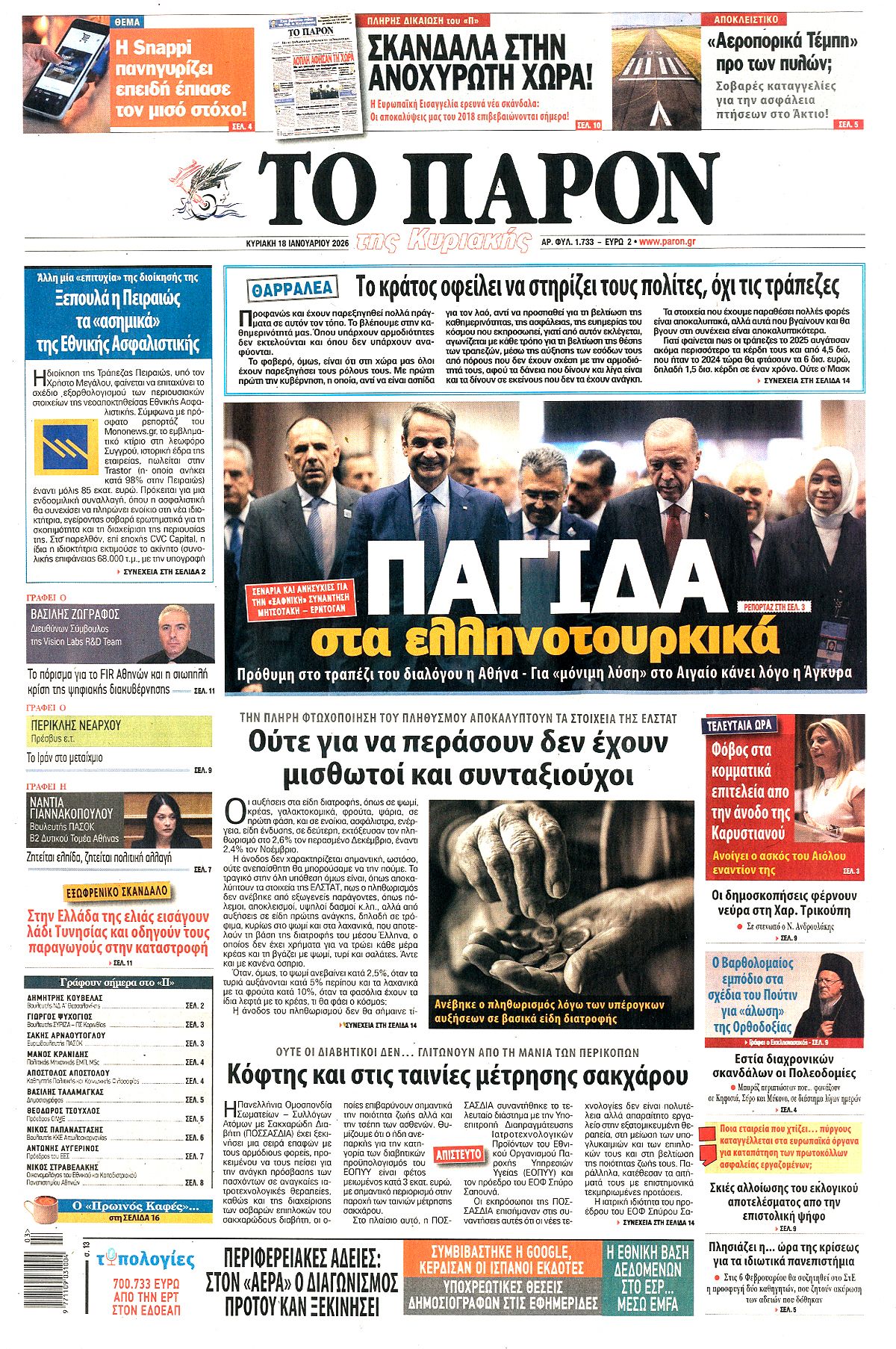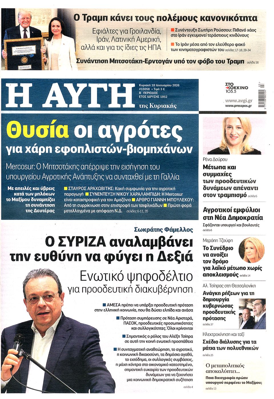Διαβάστε τα πρωτοσέλιδα των εφημερίδων της Κυριακής 18 Ιανουαρίου 2026
