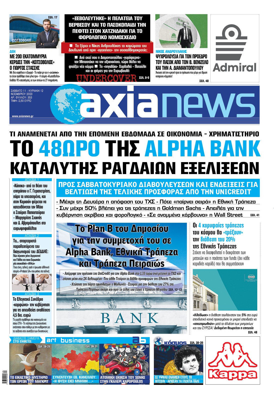 Στην «Axianews»: «Το 48ωρο της Alpha Bank καταλύτης ραγδαίων εξελίξεων»