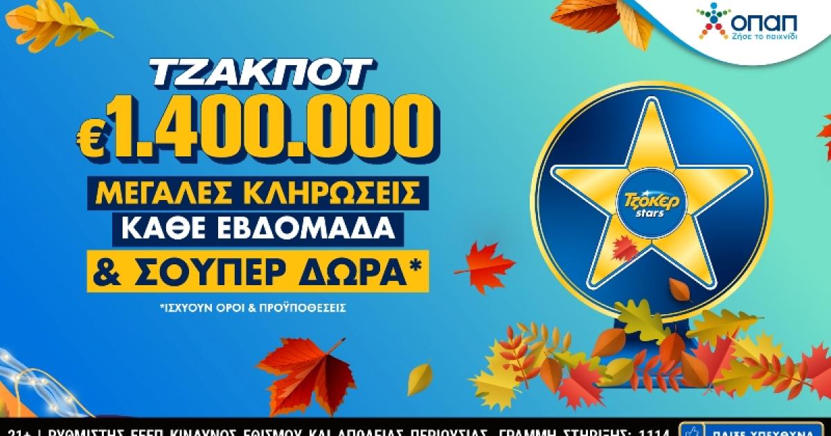 Για το πρόγραμμα επιβράβευσης TΖΟΚΕΡ Stars ισχύουν όροι και προϋποθέσεις. Οι παίκτες μπορούν να μάθουν περισσότερα μπαίνοντας στο tzoker.gr ή κατεβάζοντας την ανανεωμένη εφαρμογή ΤΖΟΚΕΡ.