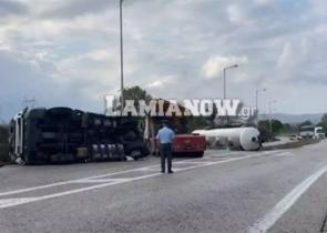 Ανατροπή βυτιοφόρου με υγραέριο στην Αθηνών – Λαμίας στο ύψος της Υλίκης: Κλειστά και τα δύο ρεύματα στην Εθνική οδό
