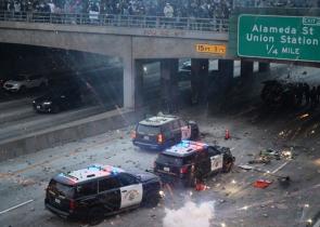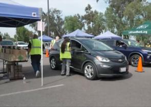 Ουρές χιλιομέτρων σχηματίζονται από εκατοντάδες αυτοκίνητα στην πόλη City of Industry της Καλιφόρνια. Οι πολίτες περιμένουν ώρες για δωρεάν τρόφιμα, ε...