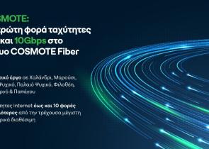 Ασύλληπτες ταχύτητες έως και 10Gbps μέσω οπτικών ινών φέρνει για πρώτη φορά η COSMOTE στο δίκτυο COSMOTE Fiber, υλοποιώντας πιλοτικό έργο σε περιοχές ...