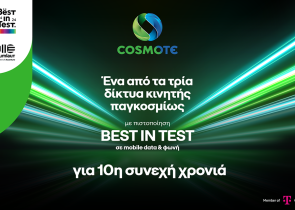 Ανάμεσα στα κορυφαία δίκτυα του κόσμου αναδείχθηκε το δίκτυο κινητής COSMOTE, αφού έλαβε για 10ησυνεχή χρονιά την πιστοποίηση «Best in Test», από τον ...