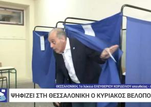 Ο Κυριάκος Βελόπουλος άσκησε το εκλογικό του δικαίωμα στο 1ο ΓΕΛ Ελευθερίου Κορδελιού