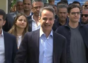 Με τα δύο παιδιά του έφτασε στο εκλογικό κέντρο ο Κυριάκος Μητσοτάκης. Μαζί του ήταν ο εορτάζων γιος του Κωνσταντίνος και η μικρή του κόρη Δάφνη.