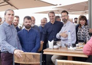 Ευδιάθετος και με χαλαρή διάθεση ο Κυριάκος Μητσοτάκης στη συνάντηση με δημοσιογράφους για καφέ και χαλαρή κουβέντα σε ταράτσα με θέα την Ακρόπολη, στ...