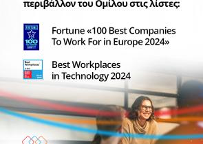 Αναγνώριση στις λίστες Fortune «100 Best Companies To Work For in Europe 2024» & Best Workplaces in Technology 2024