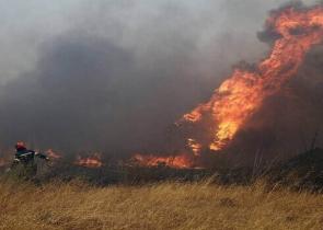 Οι φλόγες καίνε κοντά σε εξοχικές κατοικίες. Στην περιοχή πνέουν ισχυροί άνεμοι.