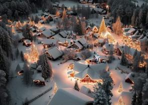 Χιονισμένο χωριό στη Λαπωνία στη Φινλανδία.