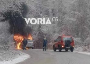 Στις φλόγες τυλίχθηκε αυτοκίνητο που βρισκόταν εν κινήσει στον δρόμο για το χιονοδρομικό κέντρο 3-5 Πηγάδια Ημαθίας, κοντά στον οικισμό Μεταμόρφωση, τ...