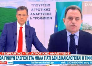 Η τιμή στα μήλα δεν δικαιολογείται, θα γίνουν έλεγχοι, ξεκαθάρισε στον ΣΚΑΪ και τον Γιώργο Αυτιά, ο υπουργός Αγροτικής Ανάπτυξης και Τροφίμων Γιώργος ...