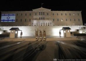 Με τα χρώματα της σημαίας του Ισραήλ φωταγωγήθηκε η πρόσοψη του κτηρίου της Βουλής των Ελλήνων σε ένδειξη συμπαράσταση για την τρομοκρατική επίθεση απ...