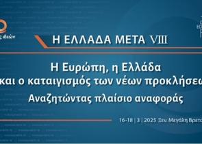 Το συνέδριο «Η Ελλάδα Μετά VIΙI» θα διεξαχθεί 16-18 Μαρτίου 2025, στην Αθήνα, στο ξενοδοχείο «Μεγάλη Βρεταννία», με γενικό θέμα: «Η Ευρώπη, η Ελλάδα...