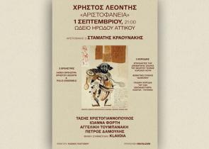 Tη μουσική παράσταση «Αριστοφάνεια» παρουσιάζει o Χρήστος Λεοντής τη Δευτέρα 1η Σεπτεμβρίου στο Ηρώδειο, με τον Σταμάτη Κραουνάκη στον ρόλο του Αριστο...
