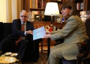 Το κατώφλι του Προεδρικού Μεγάρου πέρασε στις 11:25 ο Πρόεδρος της Βουλής, Κώστας Τασούλας, για να παραδώσει επισήμως στην Πρόεδρο της Δημοκρατίας, Κα...