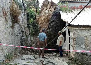 Μεγάλος βράχος αποκολλήθηκε από την πλαγιά του βουνού, σήμερα το πρωί και έπεσε στον κεντρικό δρόμο μέσα στο χωριό του Άνω Γαρούνα, Κέρκυρας. Σύμφω...
