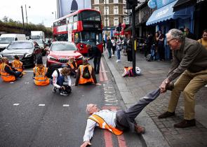 Ακτιβιστές της περιβαλλοντικής οργάνωσης Just Stop Oil κόλλησαν σήμερα τα χέρια τους στην άσφαλτο στην περιοχή Παρκ Λέιν του Λονδίνου. Η σημερινή τ...