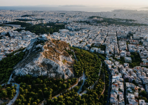Το Ηρώδειο, η Ακρόπολη και στο βάθος ο Λυκαβηττός.
