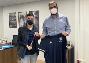 Τον αθλητή Χρήστο Παπούλια ο οποίος τερμάτισε πρώτος στη διαδρομή των 5 χιλιομέτρων στον 38ο Αυθεντικό Μαραθώνιο της Αθήνας με ρεκόρ χρόνου 14:45, συν...