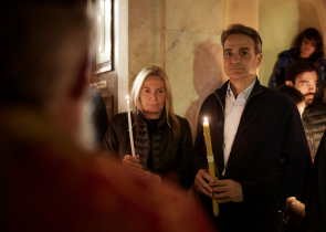 Φωτογραφίες: Ανάσταση στον Πύργο της Τήνου έκανε ο Μητσοτάκης με την σύζυγό του Μαρέβα