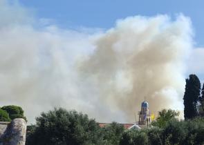 Χωρίς ενεργό μέτωπο, αλλά με διάσπαρτες εστίες, καίει η πυρκαγιά που εκδηλώθηκε μετά τις 4 το απόγευμα στα Μεταξάτα Κεφαλονιάς. Η εικόνα δείχνει βελτι...