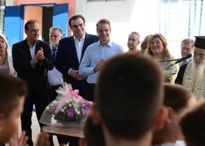 Στον αγιασμό για την έναρξη της νέας σχολικής χρονιάς στο 2ο Δημοτικό Σχολείο Γλυφάδας παρευρέθη ο πρωθυπουργός, Κυριάκος Μητσοτάκης και ο υπουργός Πα...