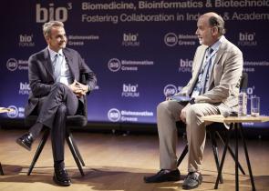 Ο πρωθυπουργός Κυριάκος Μητσοτάκης συμμετείχε σε συζήτηση με τον συνιδρυτή του BioInnovation Greece, Νίκο Κυρπίδη, στο πλαίσιο του Bio3 Forum 2025, στ...