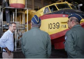 Ο Πρωθυπουργός Κυριάκος Μητσοτάκης επισκέφθηκε το πρωί στην Αεροπορική Βάση της Ελευσίνας, την 383 Μοίρα Ειδικών Επιχειρήσεων και Αεροπυρόσβεσης και τ...