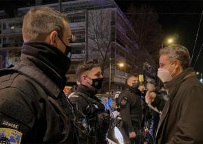 Κοντά σε μοτοσικλετιστές της Ομάδας ΔΙΑΣ που εκτελούν απόψε τη νυχτερινή βάρδια ως τα ξημερώματα της Πρωτοχρονιάς, βρέθηκαν απόψε ο πρωθυπουργός Κυριά...