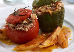 Για 5-6 άτομα Ετοιμασία: 20 λεπτά Μαγείρεμα: 100 λεπτά Υλικά - Ντομάτες μέτριες προς μεγάλες - Πιπεριές - Μελιτζάνες - Πατάτες ...