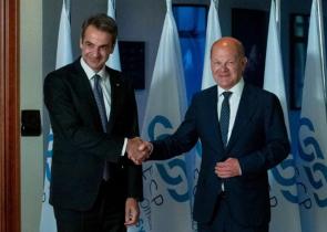 Ο Γερμανός καγκελάριος, Όλαφ Σολτς, τονίζει την «πολιτική συμφωνία» με τον Έλληνα πρωθυπουργό Κυριάκο Μητσοτάκη για την προμήθεια όπλων στην Ουκρανία ...
