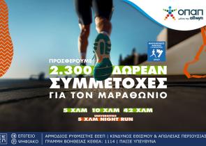 Ο ΟΠΑΠ προσφέρει 2.300 δωρεάν συμμετοχές στα 5, 10, 42 χλμ. ή 5 τα χλμ. Universities Night Run