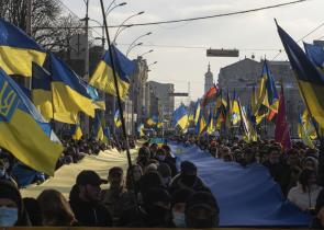 Οι διαδηλωτές στο Χάρκιβ τραγούδησαν τον εθνικό ύμνο ανεμίζοντας ουκρανικές σημαίες ή σημαίες συμμάχων που υποστηρίζουν το Κίεβο, όπως οι ΗΠΑ, η Βρετα...
