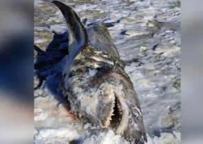ΗΠΑ: Καρχαρίας ξεβράστηκε παγωμένος σε παραλία της Μασαχουσέτης (Photos)